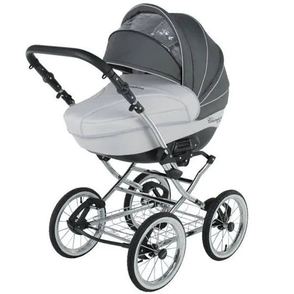 Детская коляска Adamex Champion Retro 3 в 1 отличается стальной рамой без поворотных колес. Как и в любой классической раме ее нижняя часть это вместительная металлическая сетка для транспортировки различных продуктов. Люлька и прогулочный блок модели полностью соответствуют обычной коляске Adamex Champion, разница лишь в конструкции рамы. Коляска является модульной, а это значит что в ее комплект входит люлька, легкий прогулочный блок и прочное автокресло.