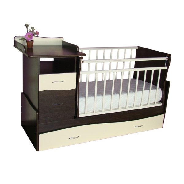 Модель очень продуманная и оснащена полным набором функций, которые необходимы, пока Ваш ребеночек совсем маленький. Маятник детской кроватки Островок уюта Чунга-Чанга позволит Вам убаюкивать малыша в считанные секунды, а при необходимости есть возможность зафиксировать его, и кроватка станет неподвижной. Для удобства ухода сбоку размещен комод с пеленальным столиком, а все детские вещи и постельное белье можно сложить внутрь. Выдвижной бесшумный ящик очень объемный и вместительный, хорошо подойдет для игрушек малыша. К тому же большим плюсом данной модели является то, что Вы сможете сами выбрать, с какой стороны расположить комод с пеленальным столиком. Таким образом, если жилое пространство ограниченное, то эта модель просто создана для Вас – можно организовать уютный детский уголок, в котором все вещи малыша компактно сосредоточены в одном месте. Для безопасности ребенка предусмотрены силиконовые накладки для режущихся зубиков, а пеленальный столик имеет высокие бортики. Главным преимуществом модели является то, что она превращается в полный набор мебели для подросшего самостоятельного ребенка: кровать 180 см в длину, тумбочку и парту. В итоге вся мебель, которой пользуется Ваш сыночек или дочка будет смотреться очень гармонично за счет единого стиля. Парта оптимальная для одного ребенка, очень эргономичная и легко уместится даже в маленькой комнате. Подростковая версия детской кроватки-трансформера Островок уюта Чунга-Чанга так же весьма функциональна: под дном кровати размещен ящик для вещей, чтобы в комнате всегда был порядок, а тумбочка имеет 3 отделения для мелких предметов. Расцветки очень привлекательные и универсальные, поэтому очень органично впишутся в любое пространство.
