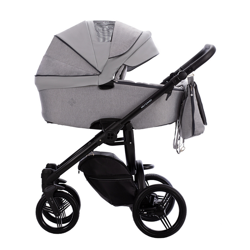 Bebetto Murano 3 в 1 – новая модель от Bebetto, сочетающая в себе тканевое и кожаное покрытие. Коляска выглядит привлекательно и при этом функциональная. Отличается тем, что капюшон выполнен из экокожи, а короб люльки, прогулочный модуль и автолюлька покрыты текстилем.