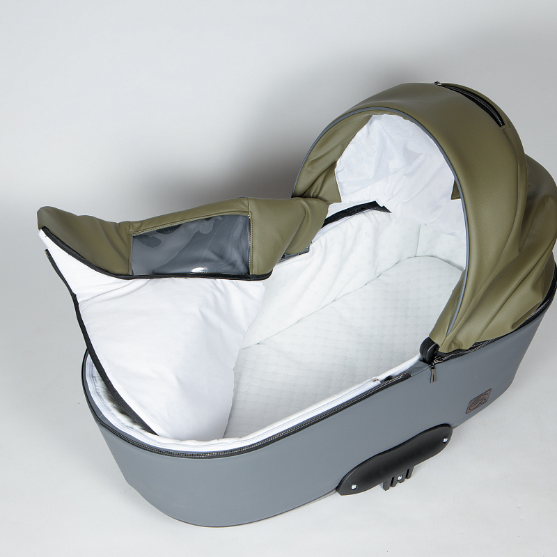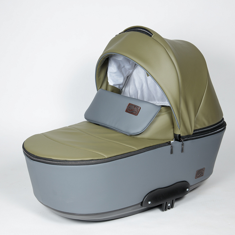 Люлька коляски ощутимо легче на вес, чем у других моделей. Такого результата производитель смог добиться благодаря использованию меньших объемов пластика в конструкции люльки. Накидка удобно крепится на молнии, что позволяет защитить ребенка от холодного ветра, и удобнее для родителей: вам не придется полностью отстегивать накидку, доставая ребенка из коляски, и искать, куда ее положить - достаточно расстегнуть молнию наполовину. В люльке коляски установлена внешняя регуляция подголовника, ветрозащитный язычок крепится на магнитах. В капюшон люльки вставлена москитная сетка для проветривания в летнее время.