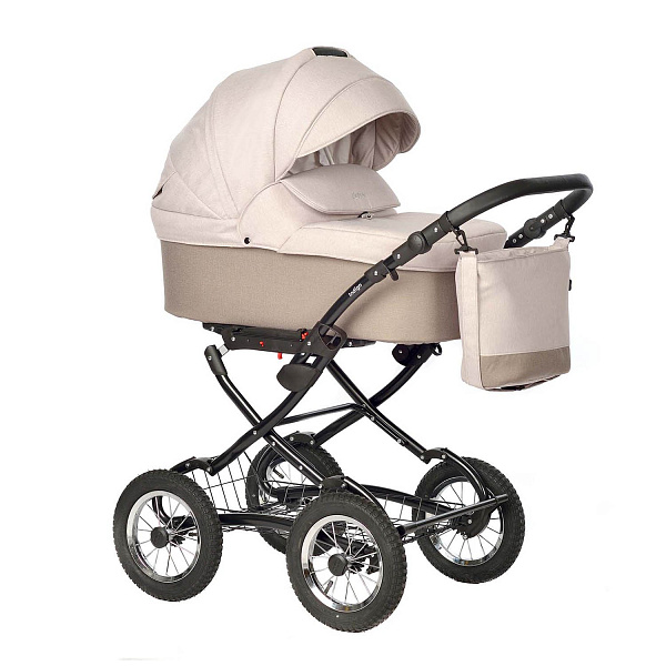 По конструкции коляска подходит под российский климат. Капюшон высокий, в нем есть вентиляционные отверстия для жаркой погоды. Накидка на ножки оснащена отворотом от непогоды. Люлька большая и удобная, с крепкой ручкой-переноской. В нижней части расположена традиционная для классической модели багажная корзина-решетка с бортиками. На ней могут уместиться объемные и достаточно тяжелые вещи.