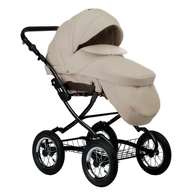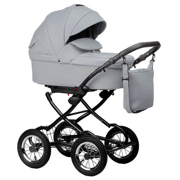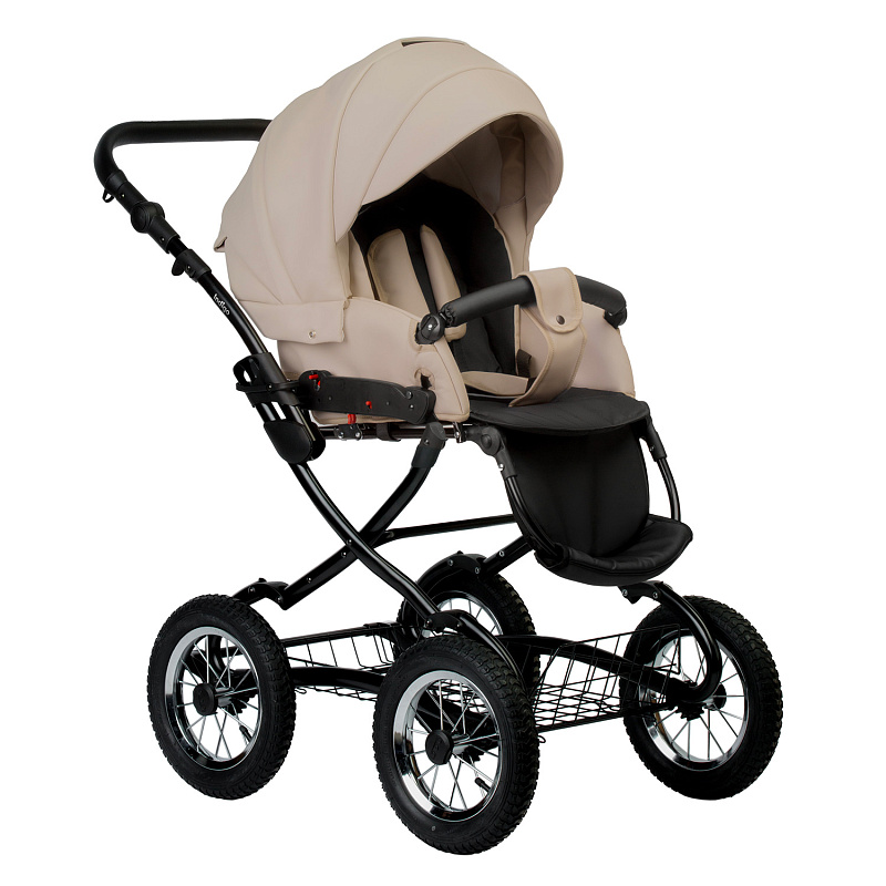 В этой модели чрезвычайно надежная и прочная классическая стальная рама. Колеса крупные, помповые, надувные, с шарнирной амортизацией – обеспечивают замечательную проходимость и мягкий ход даже на неровной дороге. Все колеса имеют одинаковый диаметр и не имеют опции свободного хода. Багажная корзина изготовлена из традиционной для такого класса колясок металлической сетки, может принимать объемные вещи.
