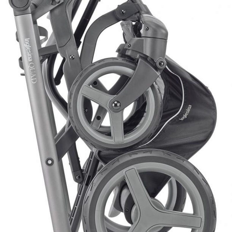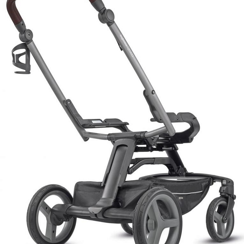 Рама сделана из алюминия, имеет глянцевую лакировку. Колеса большие, с амортизацией, выполнены из устойчивого к проколам полиуретана. Передняя пара может свободно вращаться либо стопориться для исключительно прямого хода. Колеса гармонично сочетаются с ручкой, покрытой экокожей. Складывается коляска легко, с помощью одной руки и запатентованной системы «книжка». При этом будучи сложенной коляска устойчива в вертикальном положении и не касается ручкой земли: производитель серьезное внимание уделяет гигиене родителей и ребенка. Систему венчает надежный ножной тормоз и просторная вещевая корзина. В качестве аксессуара в шасси предусмотрен подстаканник.