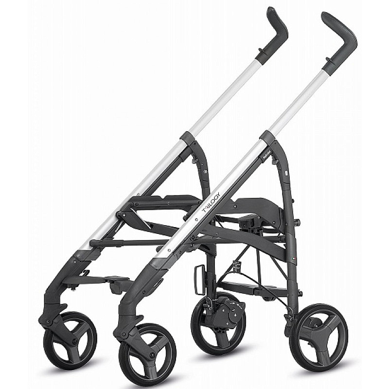 Шасси состоит из алюминиевой рамы стального цвета и одинарных небольших резновых колес с подшипниками. Передние колеса вращаются свободно или фиксируются для движения только прямо. Блокировка колес осуществляется с рамы, поэтому вам не придется нагибаться, чтобы зафиксировать или разблокировать колеса.