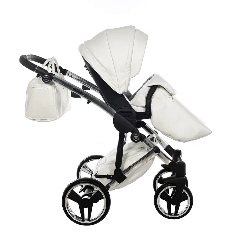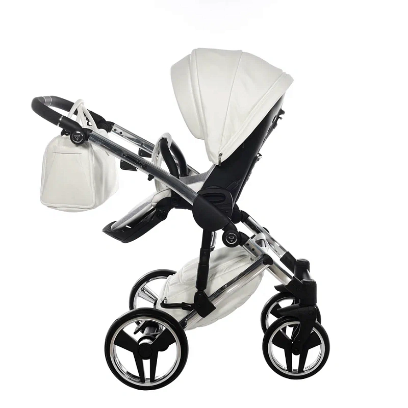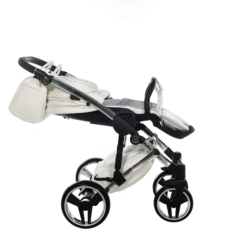 Junama Diamond Individual V2 3 в 1 на серебряной раме снабжена подстаканником, дождевиком, москитной сеткой, сумкой для мамы, чехлом на ножки.