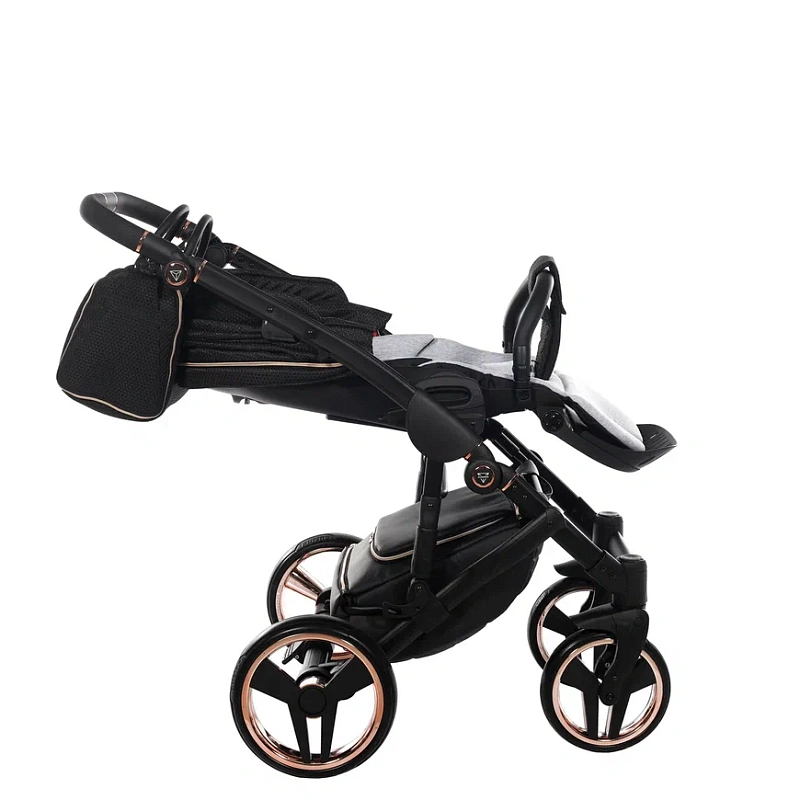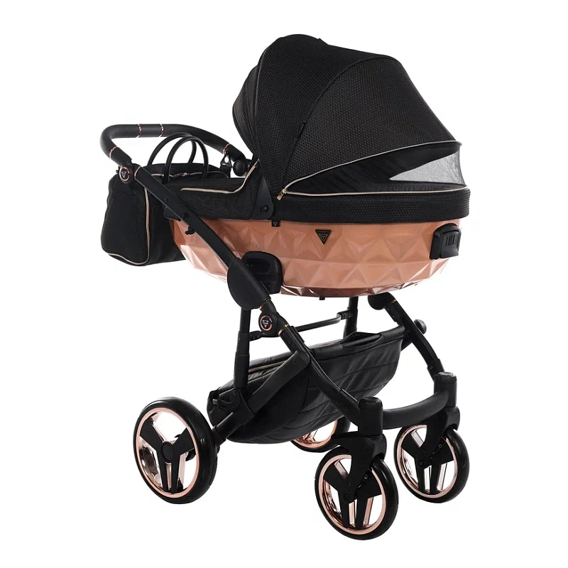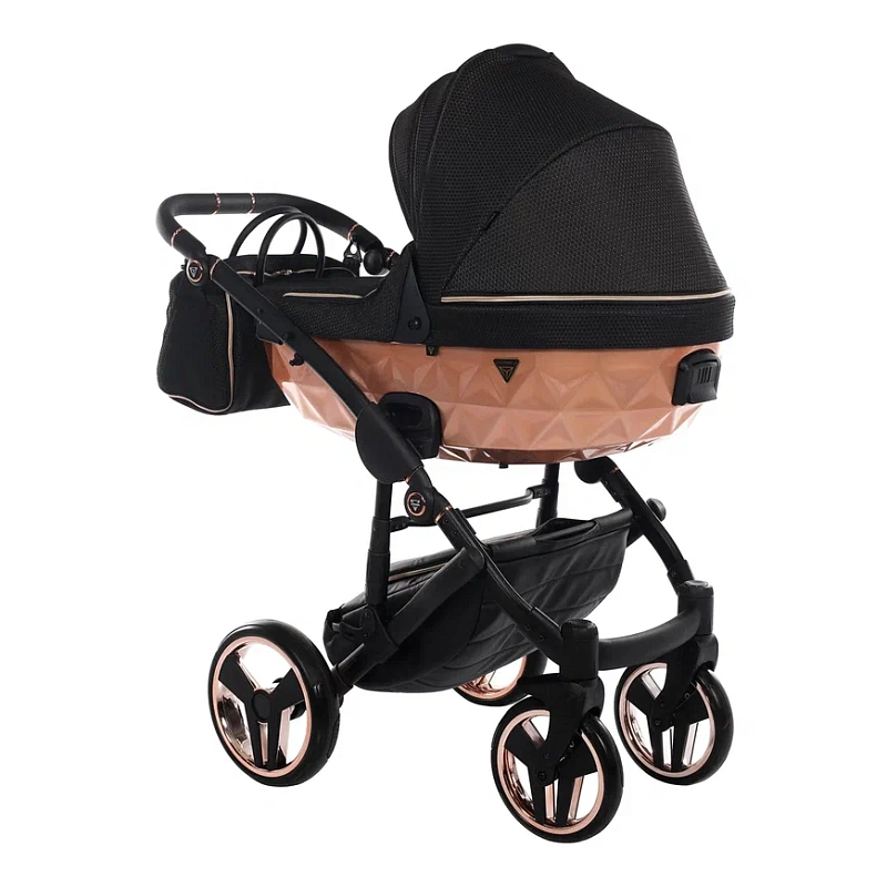 Junama Diamond Mirror Satin V2 3 в 1 получила обновление в 2022 году. Коляска стала более функциональной, европейские дизайнеры доработали внешний вид. В Version 2 съем люльки осуществляется одной кнопкой. Алмазная форма спального блока осталась прежней. В коляске для внешнего покрытия применяется премиальная ткань с пропиткой, которая препятствует проникновению внутрь влаги, не продувается ветром и не боится активного солнца. Сочетание уникального дизайна с атласной тканью создает великолепную комбинацию, которая притягивает взгляды прохожих.