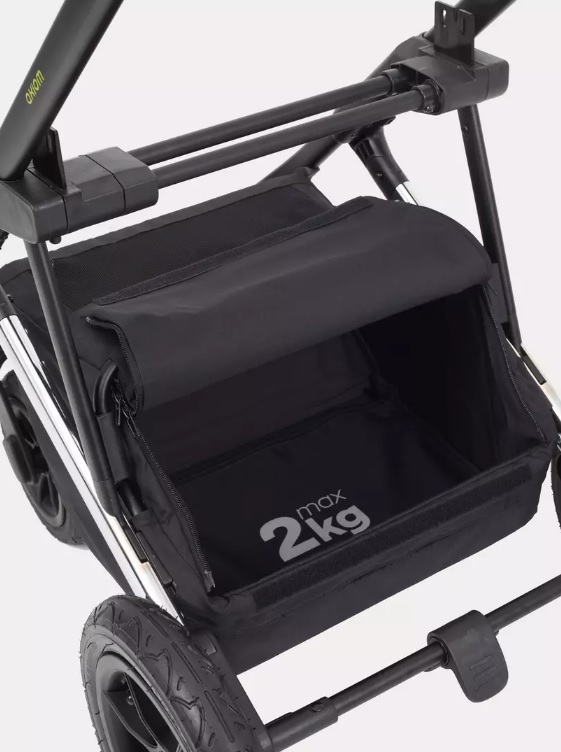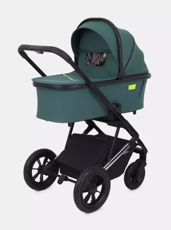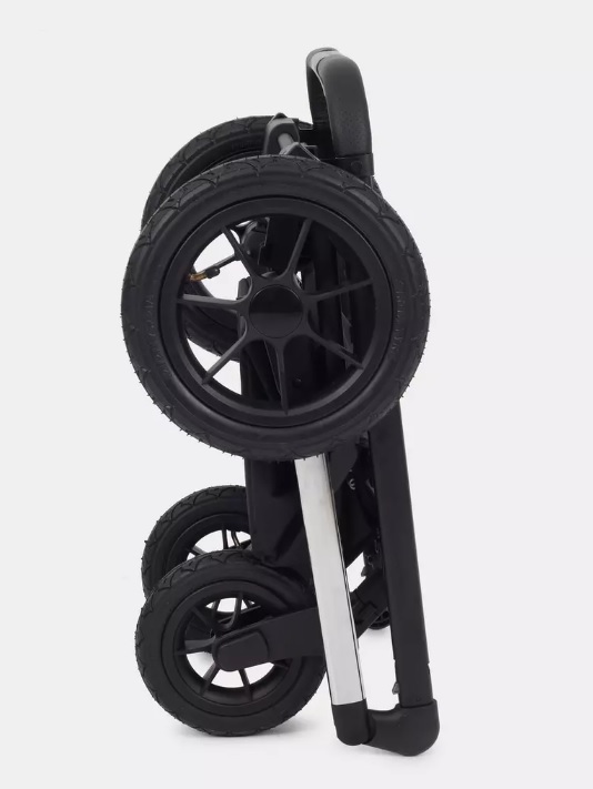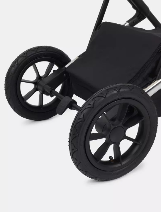 Сменные модули устанавливаются на шасси с помощью системы One Click Move. Блоки покрыты качественной тканью с защитой от влаги и солнца. В коляске Axiom надувные колеса, которые с легкостью преодолевают любые дорожные препятствия. Амортизаторы стоят на всех колесах. Передние колеса свободно вращаются и фиксируются для строго прямого движения.