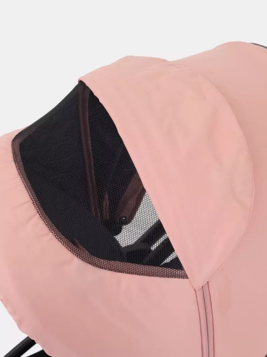 Капюшон дополнен анатомической ручкой для переноски и транспортировки и снабжен солнцезащитным козырьком. Оснащен дополнительным вентиляционным сегментом. Спинка спального блока приподнимается, чтобы присаживать малыша перед переходом в прогулочное сиденье. Ветрозащитный отворот имеет силиконовое окошко, фиксируется на магнит.