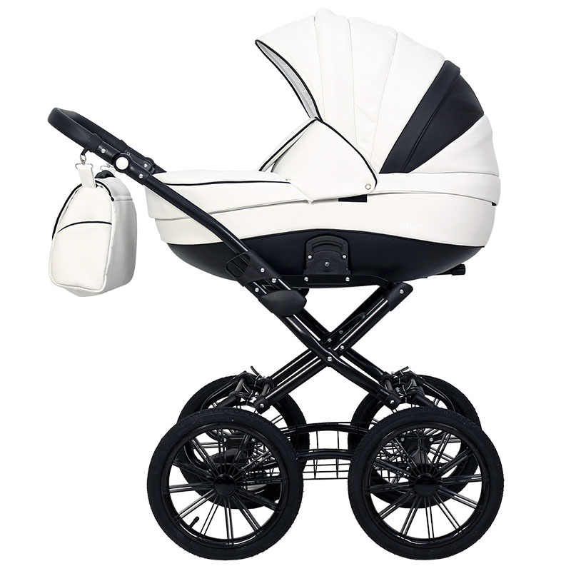 На коляске Fabio Lux Classic 3 в 1 установлена классическая рама из алюминия. Шасси складывается «книжкой». Колеса крупные, надувные, оснащены элегантными спицами. Корзина по примеру прочих классических моделей выполнена из металла в виде решетки. Родительская ручка регулируется по высоте при помощи функциональных кнопок. Тормоз педальный, ножной. Амортизационная система ременная.