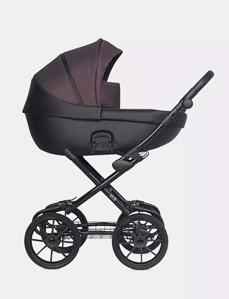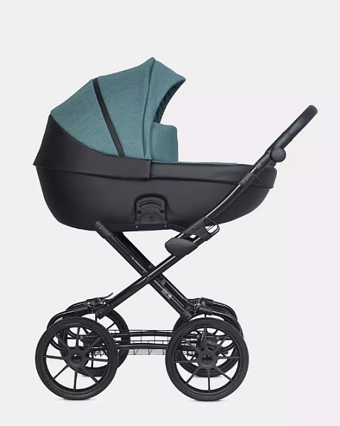 Шасси в коляске классическое, с металлической решеткой вместо текстильной корзины и большими надувными колесами, которые без труда преодолевают песок, грязь, щебень, сугробы. У коляски мягкий и плавный ход, в том числе за счет ременной амортизации.