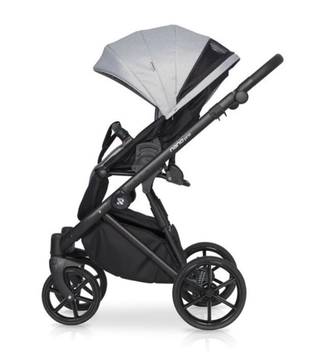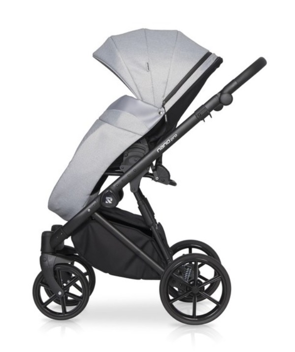 Рама алюминиевая, легкая, но прочная. Шасси с двойной амортизацией. Колеса полиуретановые, с подшипниками. Обладают функцией движения прямо либо поворота на 360 градусов. Тормозная система (центральный стояночный тормоз) установлена на задней оси. Есть система «антишок». Внизу оборудована вместительная корзина для покупок. В комплекте идет стильная сумка, которая размещается возле родительской ручки, два дождевика, антимоскитная сетка.