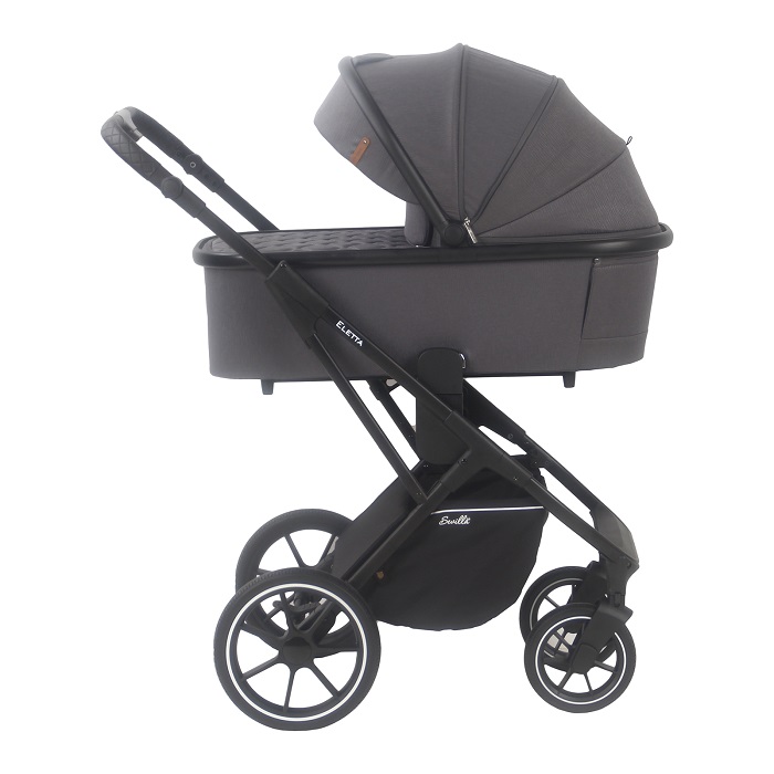 Рама в модели Элетта легкая, выполнена из алюминия. Сложить коляску можно с прогулочным блоком в положении “от себя”. Также отдельно складывается люлька. Колеса в этой модели резиновые, но бескамерные, поэтому им не страшны проколы и не нужно дополнительное обслуживание. Есть мягкая подвеска, чтобы коляска двигалась плавно и легко преодолевала препятствия. У передних колес есть опция свободного хода. Ручка для родителей регулируется по высоте, что удобно для взрослых разного роста.