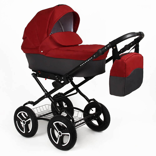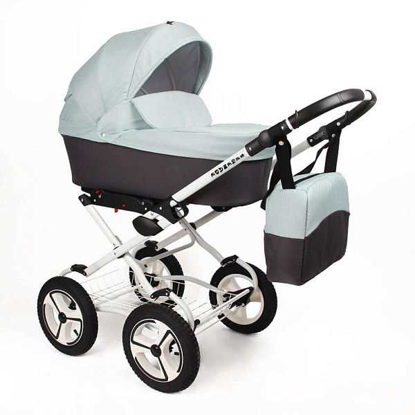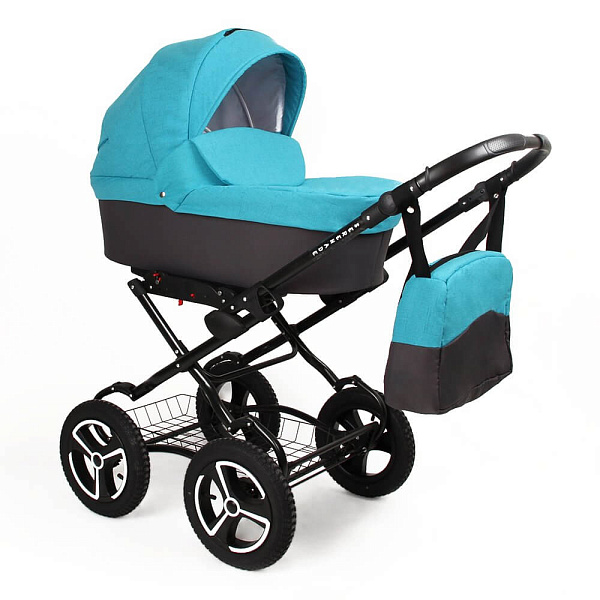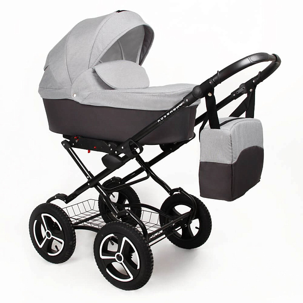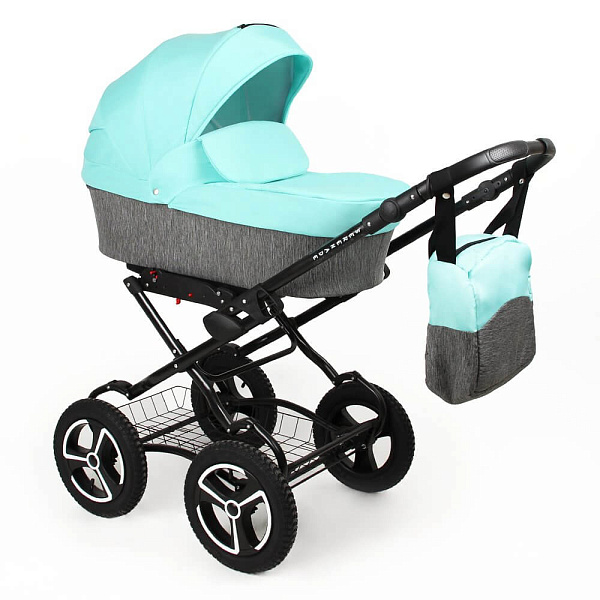 Коляска комплектуется сумкой для мамы, сеткой от насекомых и накидкой от дождя.
