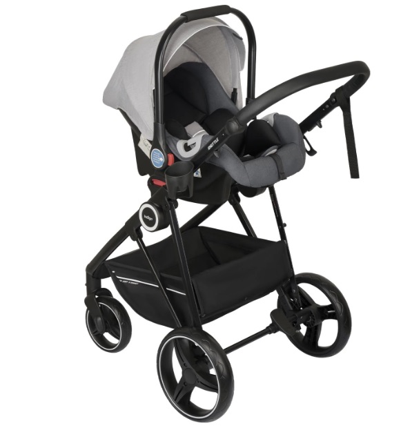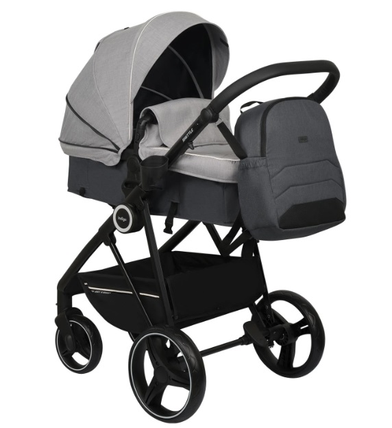Автолюлька оснащена трехточечными ремешками и анатомическим вкладышем. Ручка регулируется, есть также независимая регулировка капюшона. Автокресло соответствует стандарту ECE R 44/04 и подходит детям весом до 13 кг. В комплекте в коляске имеются специальные переходники, которыми автолюлька крепится к раме.