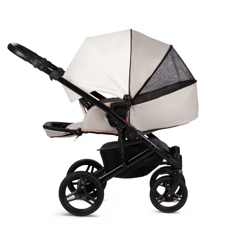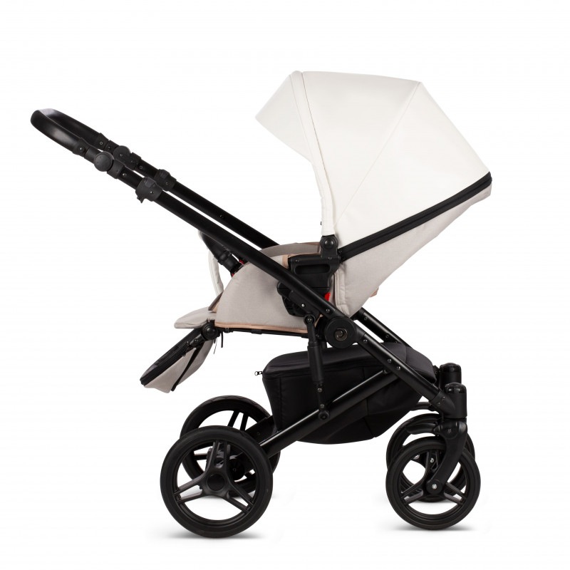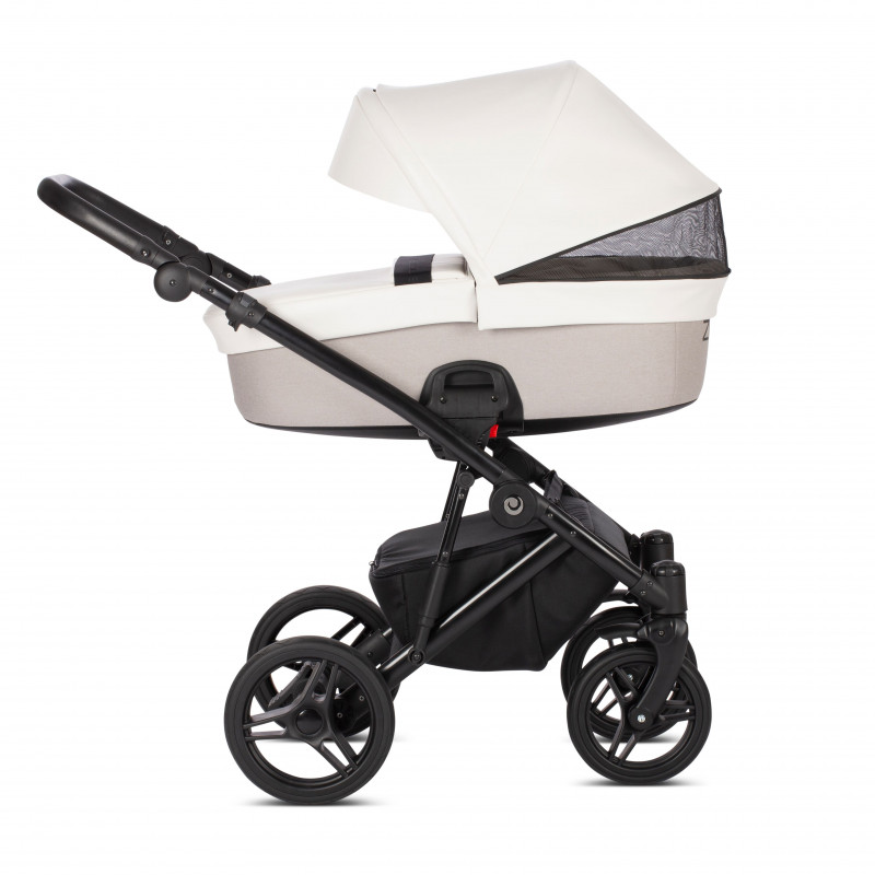 Мягкий и плавный ход коляске Zille гарантирует система амортизации, состоящая из пружин по бокам рамы и амортизатора закрытого типа на задней оси. Ребенок не почувствует ухабов даже при прогулке по брусчатке или большому бездорожью. Режим смены блоков очень простой, справится любая мама. Колеса резиновые, с гелевым наполнителем, передние поворачиваются либо фиксируются. Родительская ручка регулируемая, в кожаной оплетке. Мам порадует вместительная багажная корзина.