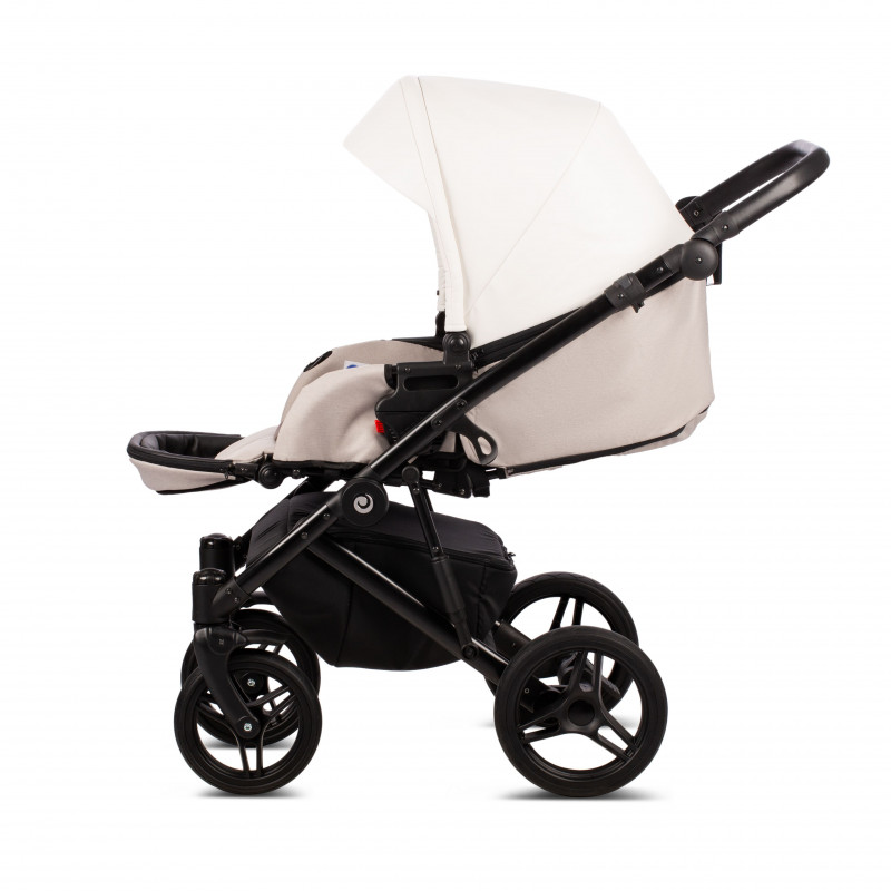Прогулочный модуль по традиции реверсивный, устанавливается в любом направлении. Для комфортных зимних прогулок предусмотрена теплая накидка на ножки с отворотом, который расстегивается и фиксируется. Текстиль на накидке дорогой: применяется мембранная ткань. Это непродуваемый и непромокаемый материал, который при этом умеет «дышать». Если ребенка надо уложить спать во время прогулки, спинка откидывается в горизонтальное положение, создавая полноценное место для сна. Глубокий капюшон с двумя дополнительными сегментами позволяет защитить малыша от солнца и ветра. По стандарту блок оснащен 5-точечными ремнями безопасности и надежным бампером-поручнем.
