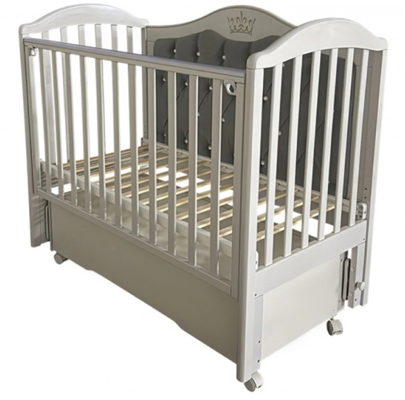 Изделие оснащено универсальным маятниковым механизмом, который поддерживает и продольный, и поперечный тип качания, что позволяет родителям выбрать наиболее комфортный вариант укачивания. Для удобного перемещения по комнате к кроватке добавлены колеса. Передняя стенка съемная и дополнена механизмом автостенки, благодаря чему уход за ребенком и доступ к нему становятся проще и безопаснее. Реечное ортопедическое ложе регулируется по высоте в трех фиксированных положениях, что дает возможность адаптировать спальное место под возраст и рост малыша. В основании конструкции расположен закрытый выдвижной ящик, который можно использовать для хранения постельного белья, одежды или других детских принадлежностей.