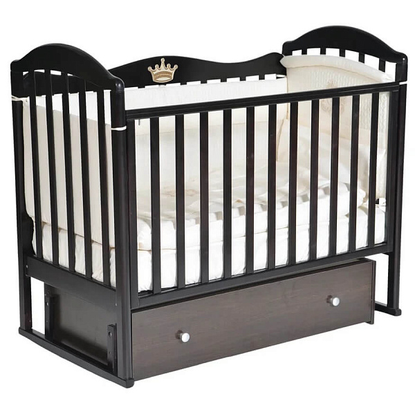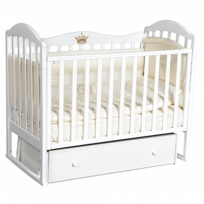 Кроватка оснащена универсальным маятником, вы можете выбрать положение, в котором удобнее раскачивать кроватку, и поменять маятник в процессе использования. Передняя стенка имеет скрытый механизм регуляции, что делает кроватку более безопасной: ведь поменять уровень положения стенки может только взрослый человек! Дизайн кроватки Антел Анита 9 примечателен тем, что не только верхушки боковых стенок кроватки имеют округлую форму, но и задняя стенка. Кроватка изготовлена из массива березы, округлые части сделаны из высококачественного МДФ. 3д наклейка в виде короны украсит классический дизайн кровати, вы сможете сами выбрать место, куда приклеить накладку.