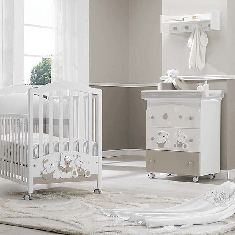 Роскошное творение итальянских производителей подойдет детям до 4 лет. Кроватка Erbesi выполнена из массива бука и покрашена экологически чистыми лакокрасочными материалами, что отвечает всем европейским стандартам качества. Модель белоснежно белая с вкраплением серого цвета в месте аппликации с тремя мишками и зайчиком. Благодаря дизайну и цвету кроватка вольется в любой современный интерьер комнаты.