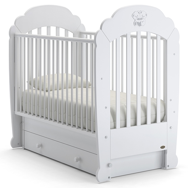 Милая кроватка Парте гармонично впишется в сказочную атмосферу спальни. Волнообразные линии, аппликации-медвежата и красивые пастельные тона делают эту модель незаменимой в легких и романтичных интерьерах. Для создания детской мебели Нуовита производитель использует натуральное дерево бука, высококачественные крепежи и краски на гипоаллергенной основе.