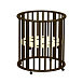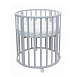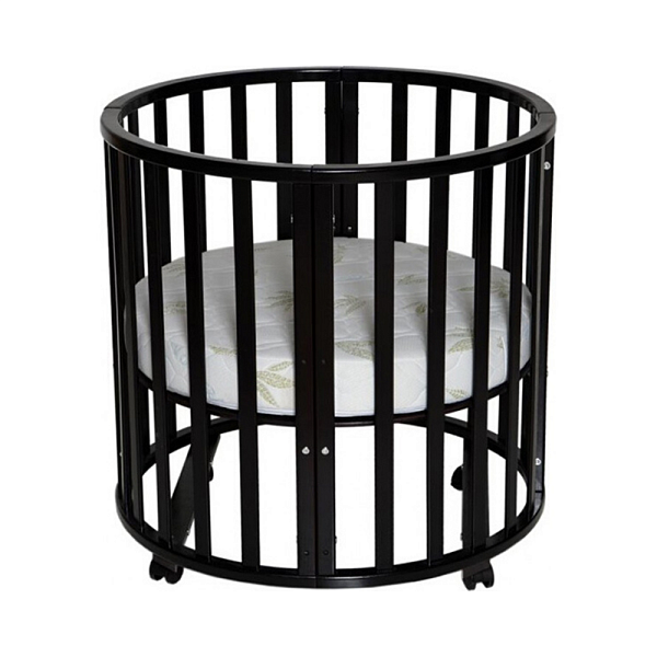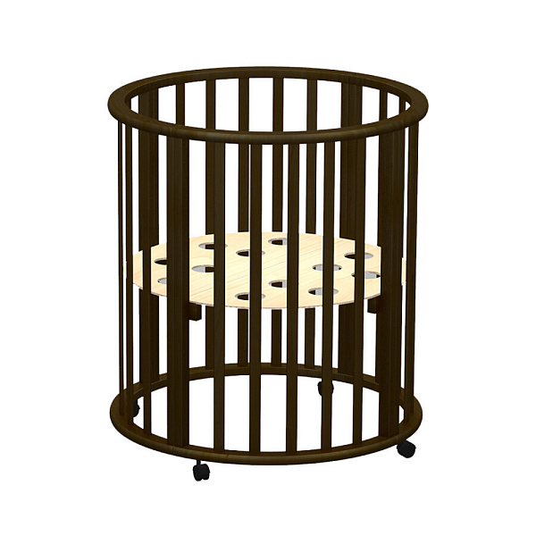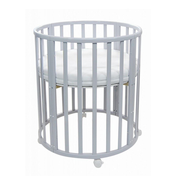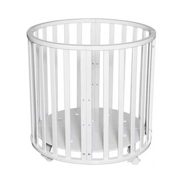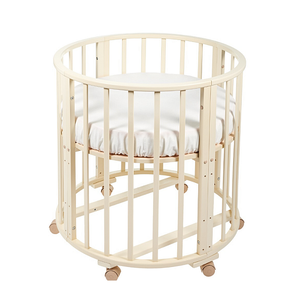 Особенность данной модели заключается в том, что используется для ее производства массив берѐзы бессучковый без стыков и склеек. Кроватка имеет 3 положения днища, и в комплектакции идет 4 колеса на стопорах в цвет кровати. Данная модель обладает большим количеством расцветок, которые все получаются за счет применения красок на водной основе. Сама кроватка собирается сначала в круглую кроватку и пеленальный столик, потом собирается в овальную кроватку. В дальнейшем родители могут сделать из этой мебели столик и два стульчика, которые станут отличным дополнением детского игрового уголка.