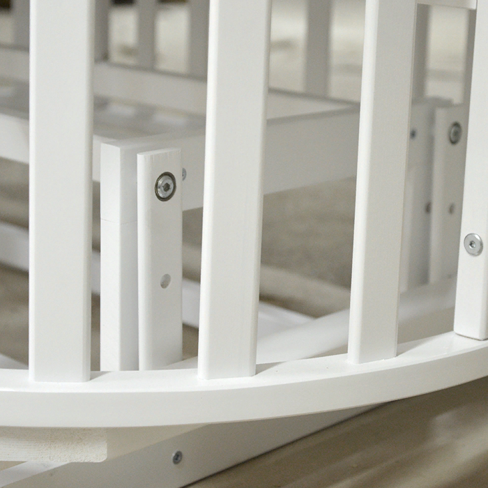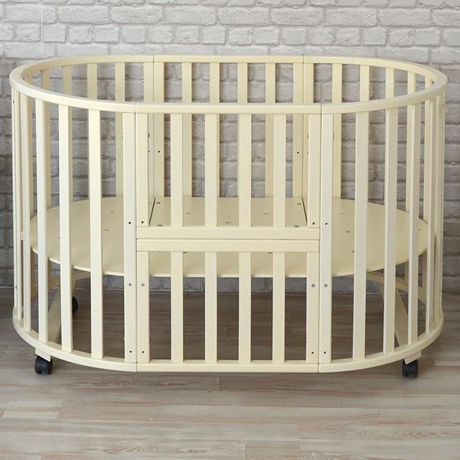 Еще варианты — диванчик для старшего ребенка и приставная кровать для малыша. В этом случае у овальной кроватки нужно снять боковой бортик. Еще один вариант трансформации — манеж. Он формируется так: в овальной кроватке полностью опускается спальная основа, чтобы у ребенка было большое и безопасное игровое пространство.