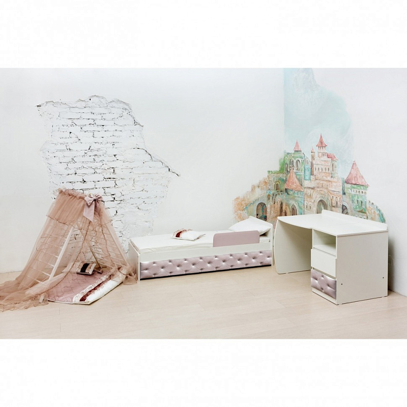 Благодаря большому и глубокому подкроватному выкатному ящику в кроватку помещаются все детские вещи и игрушки, благодаря оригинальному вигваму у ребенка появляется необычный домик для игр. В тумбе два вместительных ящика, есть два варианта установки.