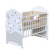 Мобильная детская кровать от российского бренда ВДК. Изготовлена из березы и ЛДСП, покрыта экологичной краской. Несколько нейтральных расцветок дают родителям выбор и позволяют гармонично вписать кроватки в интерьер любой детской комнаты. На боковине изображены милые медвежата с сердечками на животиках.
