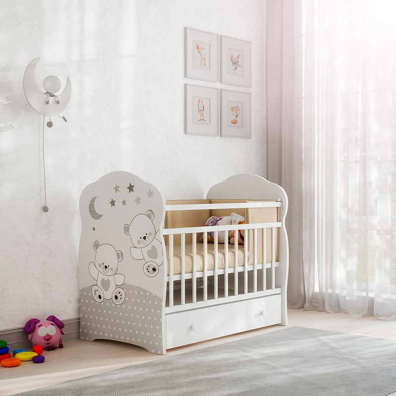 ВДК Funny Bears (Фанни берс) маятник/ящик — стильная и функциональная десткая кроватка с поперечным маятником и большим выдвижным ящиком