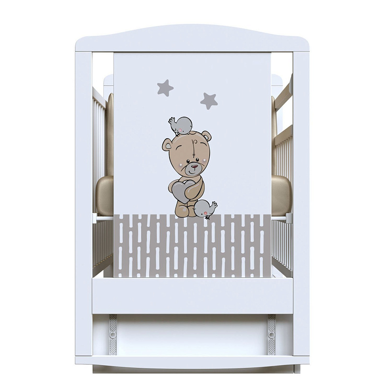 Российский бренд ВДК представляет кроватку из натуральной березы для детей с рождения до 3-4 лет. Среди отличительных особенностей модели — красочное изображение с медвежонком, держащим в лапах сердечко и окруженным забавными птичками. Ребенку будет уютно, комфортно и безопасно в этой кроватке. Родителям понравится не только дизайн и внешний вид, но и набор функций, который есть у этой модели.