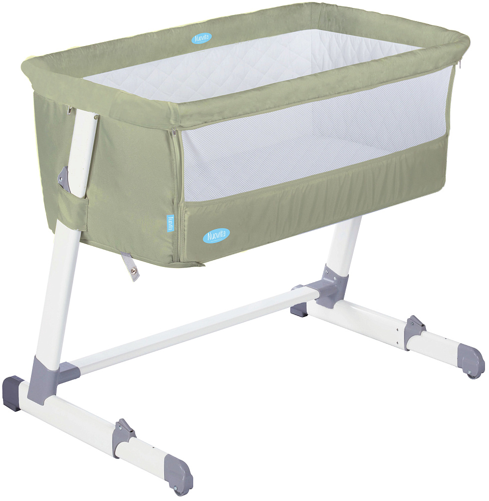 Это уютное гнездышко позволит малышу спать рядом с мамой. А это значит, — не придется вставать ночью, чтоб покормить его или успокоить после внезапного пробуждения. Благодаря регулировке высоты детская приставная кроватка Nuovita Accanto легко устанавливается на одном уровне с родительской постелью. Также вы можете отрегулировать ее наклон. Если слегка наклонить спальное ложе, ребенку будет легче дышать во время простудного заболевания или после кормления.