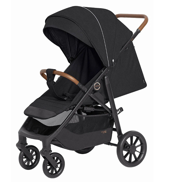 Спинка твердая, регулируется механически, опускается почти в полностью лежачее положение для сна на улице. Спальное место имеет длину 92 см. Колеса выполнены из мягкого полиуретана, могут сгладить все неровности на пути. Помогают им в смягчении пружинные амортизаторы. Также передние колеса могут свободно вращаться для улучшения маневренности на ровной поверхности. Колеса фиксируются для движения по неровностям.