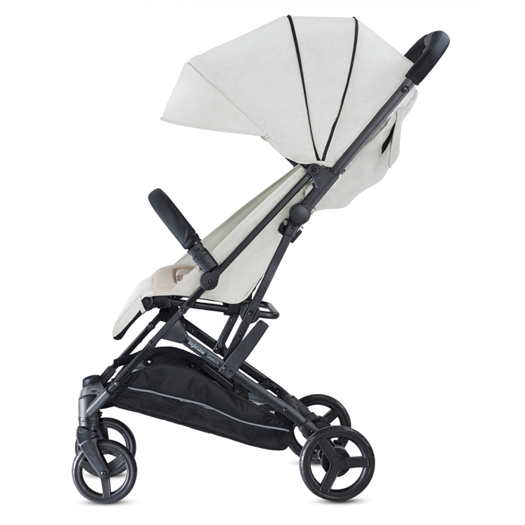 У коляски Inglesina Sketch удобное и вместительное сиденье, целиком откидывается спинка, есть регулируемая подножка, обеспечивающая комфорт даже во время сна. Ручка в коляске цельная. Капюшон раздвижной, покрытие выполнено из текстиля со специальной пропиткой и защитой от ультрафиолета UPF50+.