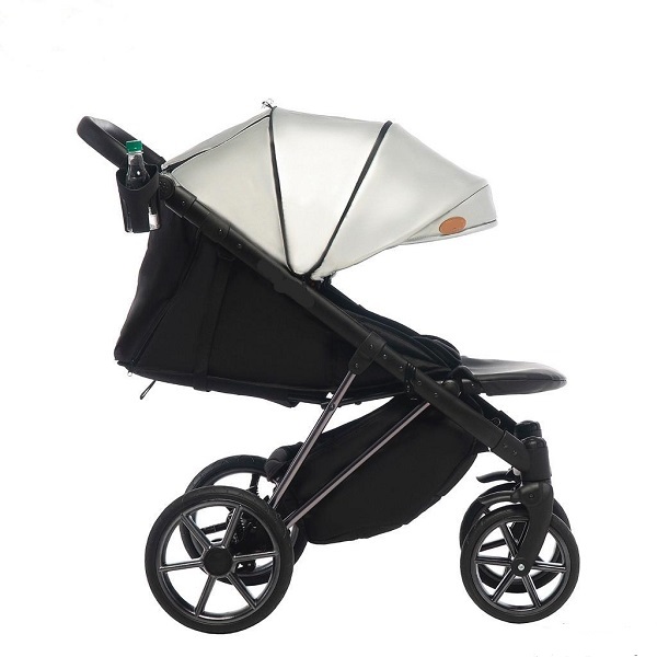 Рама Jaxee World Gold сделана из алюминия, окрашена в серебряный цвет. Метод складывания — «книжка». Сиденье отличается вместительностью: ширина в 38 см позволяет ребенку в зимней одежде не чувствовать себя скованно. Спинка откидывается и крепится в четырех положениях. В лежачей позиции ребенка можно укладывать спать прямо в коляске. Подножка регулируется, в поднятом положении удлиняет место для сна.