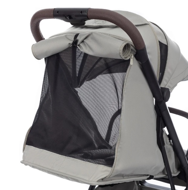 Просторный капюшон из водоотталкивающей ткани с защитой UPF 50+ надежно укрывает ребенка от солнца, ветра и осадков. Он регулируется бесшумно, оснащен смотровым окошком с магнитной шторкой для наблюдения за малышом без помех. Дополнительная секция на молнии раскрывает два сетчатых окошка, обеспечивая отличную вентиляцию в жаркие дни.