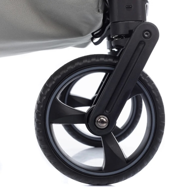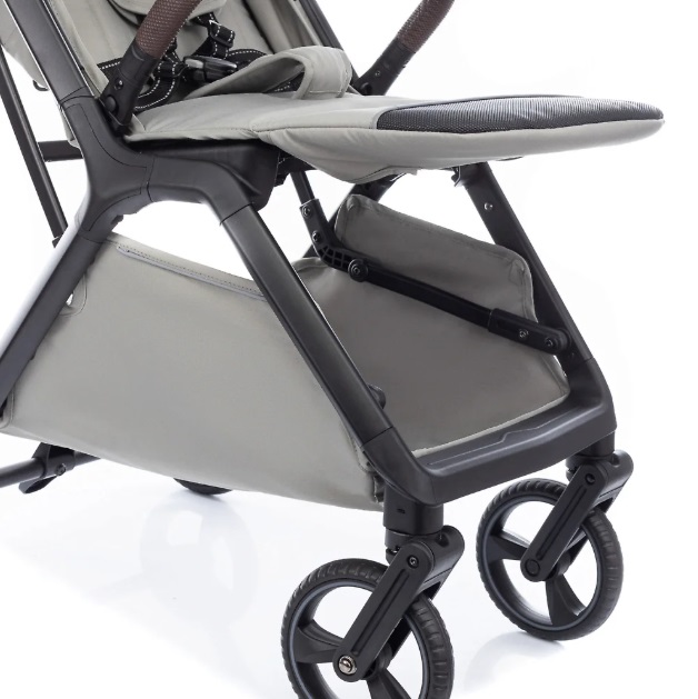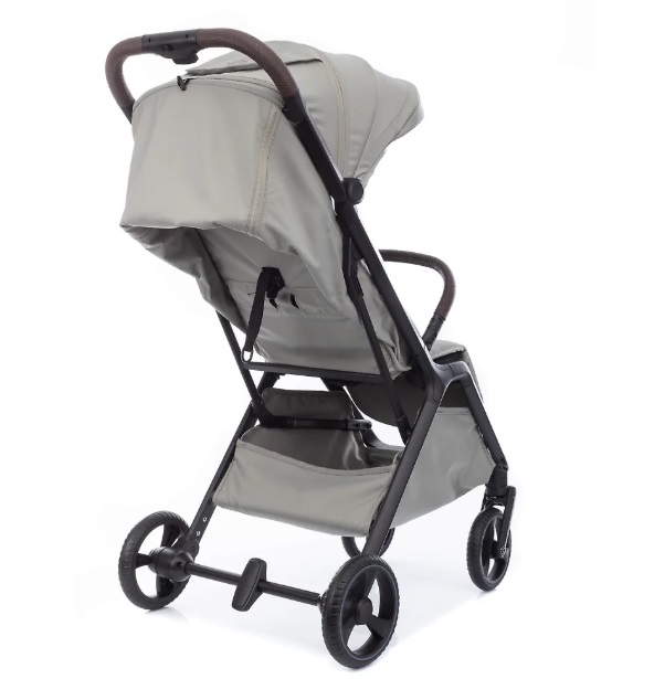 Колеса среднего размера подходят для городских условий, обеспечивая проходимость по тротуарам и парковым дорожкам. Передние поворотные колеса гарантируют легкую маневренность, а двусторонняя педаль тормоза между задними колесами удобна и не пачкает обувь. Вместительная корзина из плотной ткани расположена высоко, с легким доступом спереди и сзади, и подходит даже для крупных вещей, таких как рюкзак. Ручка с рифленой экокожей обеспечивает удобный хват. Коляска автоматически складывается в компактную «книжку» с помощью кнопок на ручке, стоит самостоятельно и легко помещается в багажник автомобиля. Для авиаперелетов уточняйте правила провоза у авиакомпании.