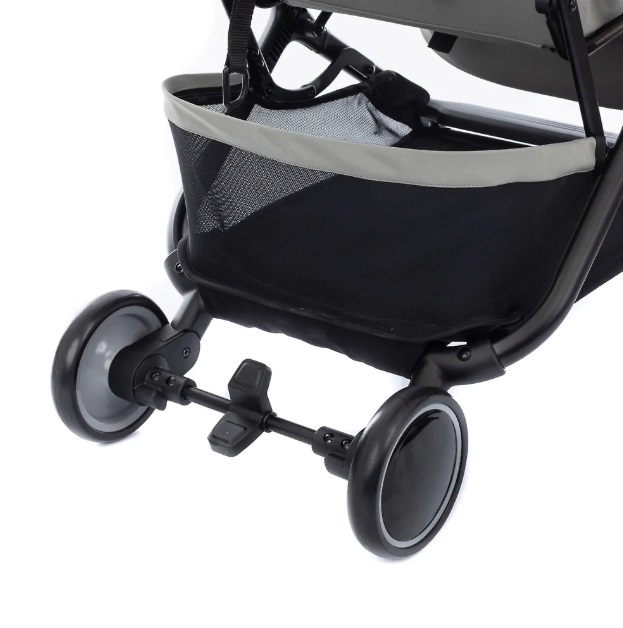 Компактные колеса с амортизацией и системой «антишок» на передней паре обеспечивают плавный ход по тротуарам, плитке или парковым дорожкам. Передние колеса маневренные, без фиксации, что делает коляску юркой. Тормоз на перекладине между задними колесами удобен и не пачкает обувь. Ручка, покрытая экокожей, имеет эргономичный хват, подходящий для родителей любого роста. Уникальная система автоматического сложения позволяет одним движением превратить коляску в компактную конструкцию, которая стоит самостоятельно и подходит для ручной клади в самолетах (уточняйте правила авиакомпании). Просторная корзина с доступом спереди и сзади вмещает все необходимое.