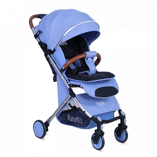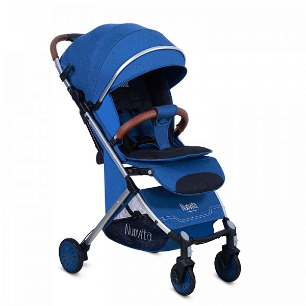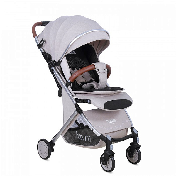 «Прогулка» от Nuovita компактно складывается, удобна в путешествиях. Спинку можно привести в лежачее положение и уложить ребенка спать. Для комфорта приподнимается подножка, увеличивая место для сна на 16 см. Средства защиты — пятиточечные ремни, межпаховый разделитель, съемный бампер.