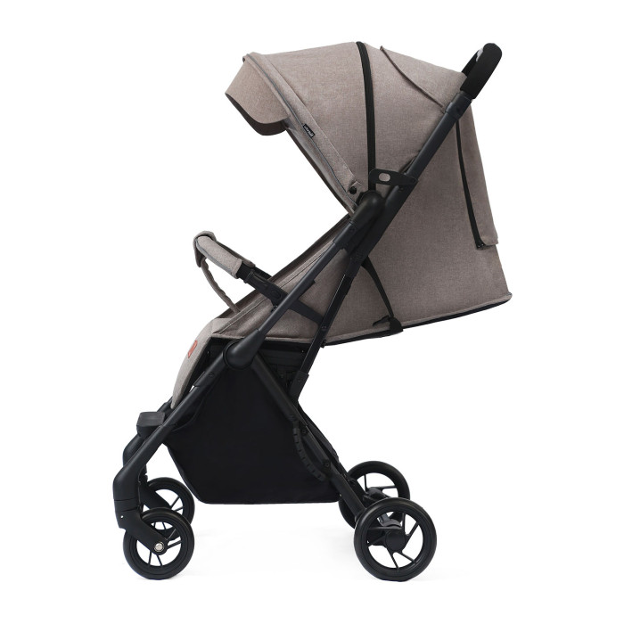 Чтобы родители не волновались за безопасность юного пассажира, в коляске предусмотрены 5-точечные ремни с надежным замком, съемный бампер и паховый разделитель. Капюшон также хорошо защищает ребенка от осадков и яркого солнца. Капор «ходит» без шума, раскладывается в трех положениях. Есть дополнительный солнцезащитный козырек. Обшивка модели — инновационная ткань 300 D лен, не промокающая и не выгорающая на солнце. Также ей не страшен ветер. Благодаря специальной пропитке грязь не попадает в волокна ткани. Вот почему за коляской легко ухаживать — можно просто чистить ее влажной губкой. Ручка для родителей сделана из мягкого материала.