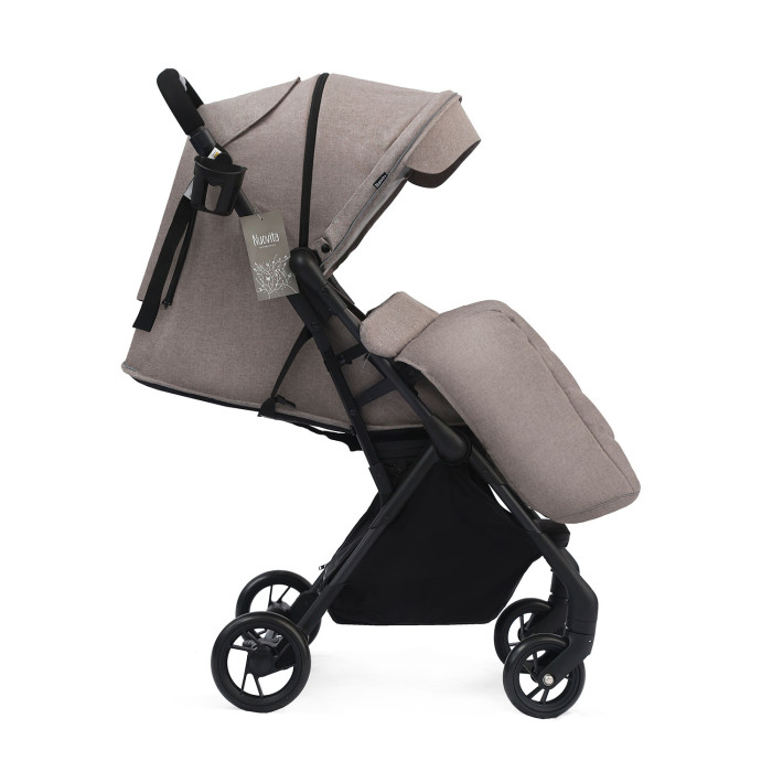 Комфортная коляска Nuovita Sfera предназначена для прогулок с ребенком от 6 месяцев до 3 лет. Модель легкая и компактная, весит меньше 7 кг. При таком легком весе коляска располагает габаритным сиденьем шириной 31 см. Угол наклона спинки регулируется, она опускается почти в горизонтальное положение (175 градусов), которое позволяет укладывать ребенка спать прямо на прогулке. Система наклона регулируется специальным ремнем, который закреплятеся на каркасе коляски. Чтобы ребенок мог положить ножки, предусмотрена выдвижная подножка.