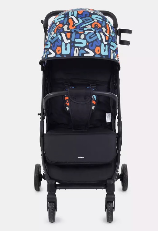 Родителям будет удобно с этой моделью, ведь ее можно катить как чемодан. Складывается и раскладывается Джуно одной рукой. Также одной рукой можно откинуть бампер. В капюшоне оборудовано смотровое окошко для вещей. Благодаря удобному тормозу-качельке вы не испачкаете обувь. В комплекте идет подстаканник для любимых напитков.