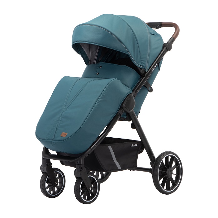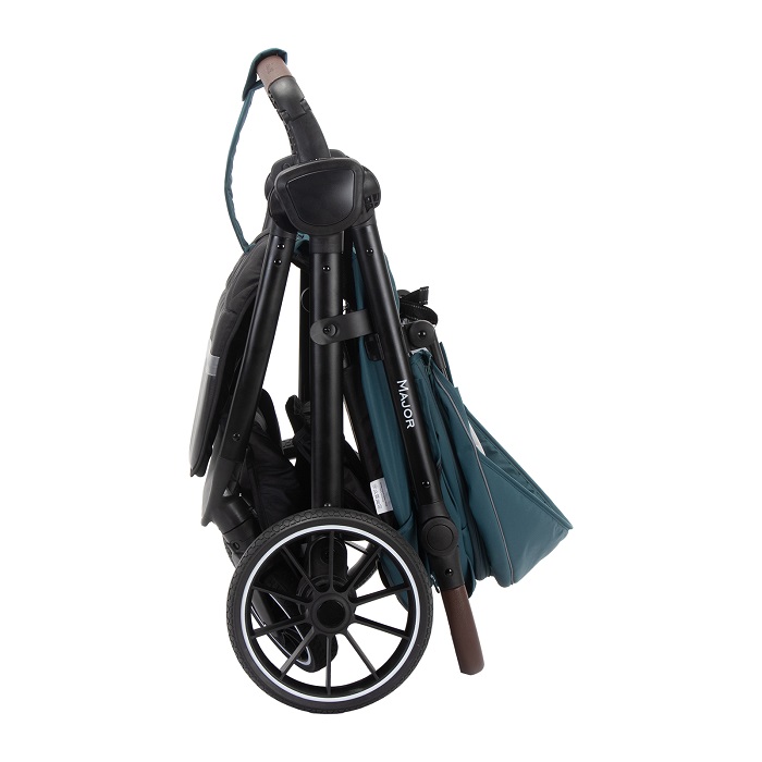Major – коляска, с которой можно гулять в любое время года. Максимальная нагрузка в 22 кг позволяет использовать ее до тех пор, пока ребенку не исполнится 4 года. Рама усиленная, алюминиевая. Колеса выполнены из вспененной резины, не прокалываются и не требуют специального ухода, а также подкачки. У передних поворотных колес – дополнительная система амортизации, которая сглаживает удары о препятствия. Поскольку колеса крупные, коляски хорошо справляется с бездорожьем.
