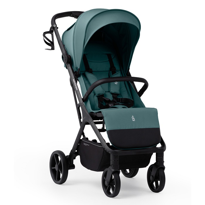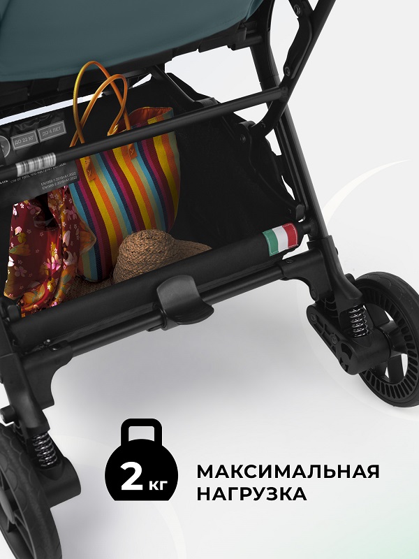 Легкая алюминиевая рама весом 8,1 кг с матовым покрытием и хромированной фурнитурой выглядит стильно и современно. Увеличенные резиновые колеса (передние 15 см, задние 19,5 см) с протекторами и пружинной амортизацией обеспечивают плавный ход по асфальту, парковым дорожкам или грунту. Поворотные передние колеса повышают маневренность, а ножной тормоз надежно фиксирует коляску. Система автосложения позволяет сложить коляску одной рукой, а встроенная ручка для переноски и компактные размеры упрощают транспортировку и хранение. Вместительная корзина выдерживает до 3 кг.