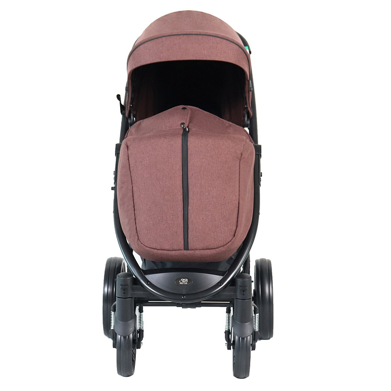 За счет больших задних колес коляска легко преодолевает неровности и препятствия на дороге. Передние колеса меньшего размера отвечают за маневренность в сложных условиях города. Передние колеса можно блокировать, если нужно передвигаться по грязи или снегу.