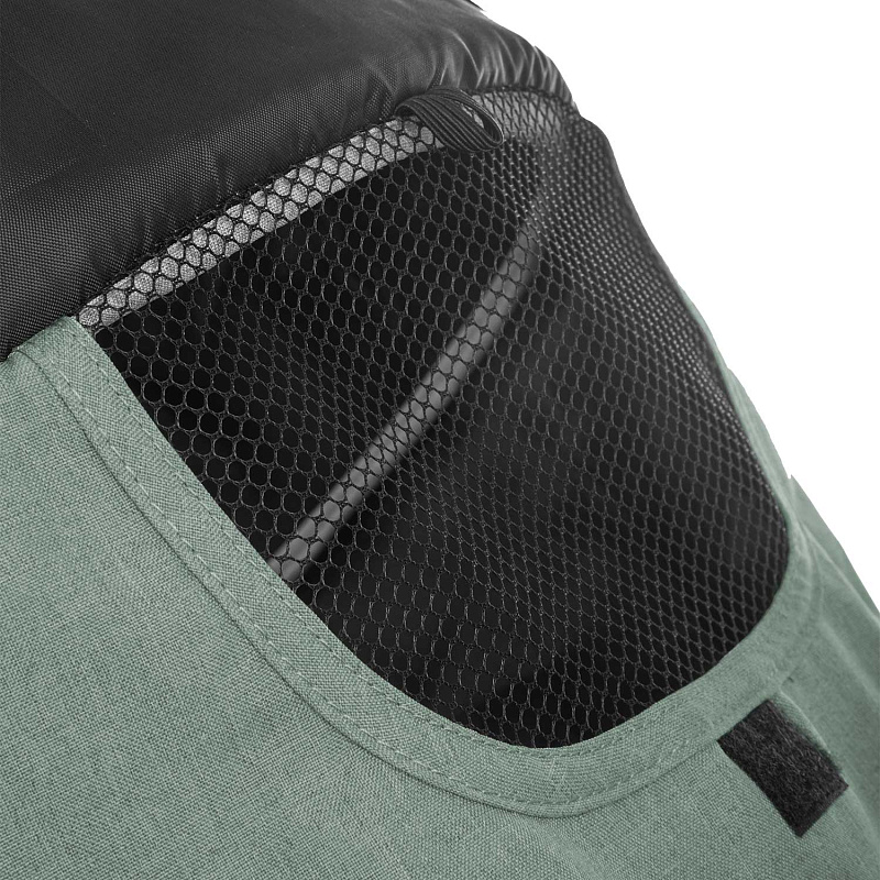 У коляски объемный капюшон из влагонепроницаемой ткани, который опускается при необходимости до бампера и защищает ребенка от солнца, осадков и посторонних взглядов. Во время прогулки родители могут наблюдать за ребенком через смотровое окошко. Защитный бампер разъемный, покрыт экокожей, дает возможность без проблем сажать и высаживать малыша в коляску. Надежно защитят от падения пятиточечные ремни. Спинка регулируется по наклону, а благодаря светоотражающим элементам коляска более заметна в темное время суток.