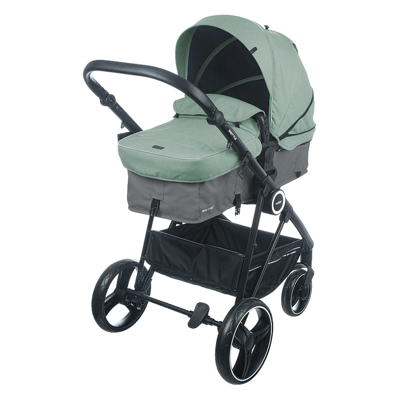 Задняя часть прогулочного блока оборудована удобным кармашком для мелочей и сетчатым карманом для вещей. Подножка регулируется по высоте, снабжена накладкой из искусственной кожи, что делает уход за коляской более простым, а срок эксплуатации – более длительным. Колеса выполнены из вспененной резины, выделяются большой устойчивостью к износу и обеспечением комфорта для ребенка. Переднюю пару можно фиксировать для прямого движения или давать свободный ход для улучшения маневренности. На неровной дороге помогут амортизаторы на передних и задних колесах.