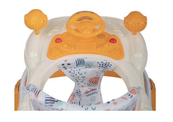 Устройств оснащено встроенной игровой панелью со звуковыми эффектами, которая добавляет интерактивности и увлекательности в процесс использования ходунков. Малыш будет наслаждаться игрой, развивая мелкую моторику и слух. Чехол легко чистится, это серьезно упрощает уход за ходунками. Модель представлена в трех ярких расцветках.