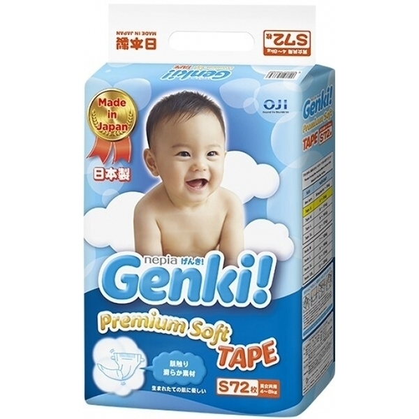 Детские подгузники Genki S, 4-8 кг, 72 штуки