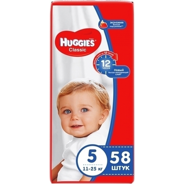 Детские подгузники Huggies Classic 5, 11-25 кг, 58 штук