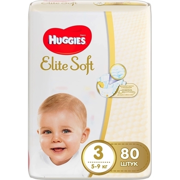 Детские подгузники Huggies Elite Soft 3, 5-9 кг, 80 штук